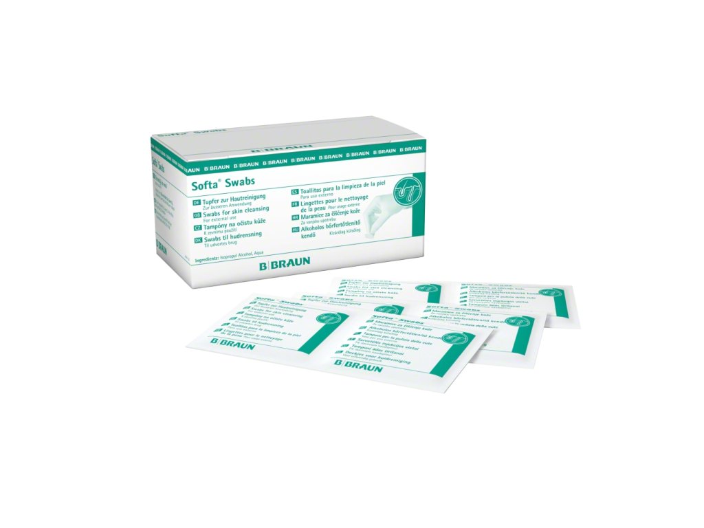 Tampóny sú napustené 70 % izopropylalkoholom, ktorý zabezpečuje spoľahlivý dezinfekčný účinok. Každý tampón Softa® Swabs má rozmery 32,5 × 30 mm v složenom stave a 65 × 30 mm v rozloženom stave. Balenie obsahuje 100 kusov.