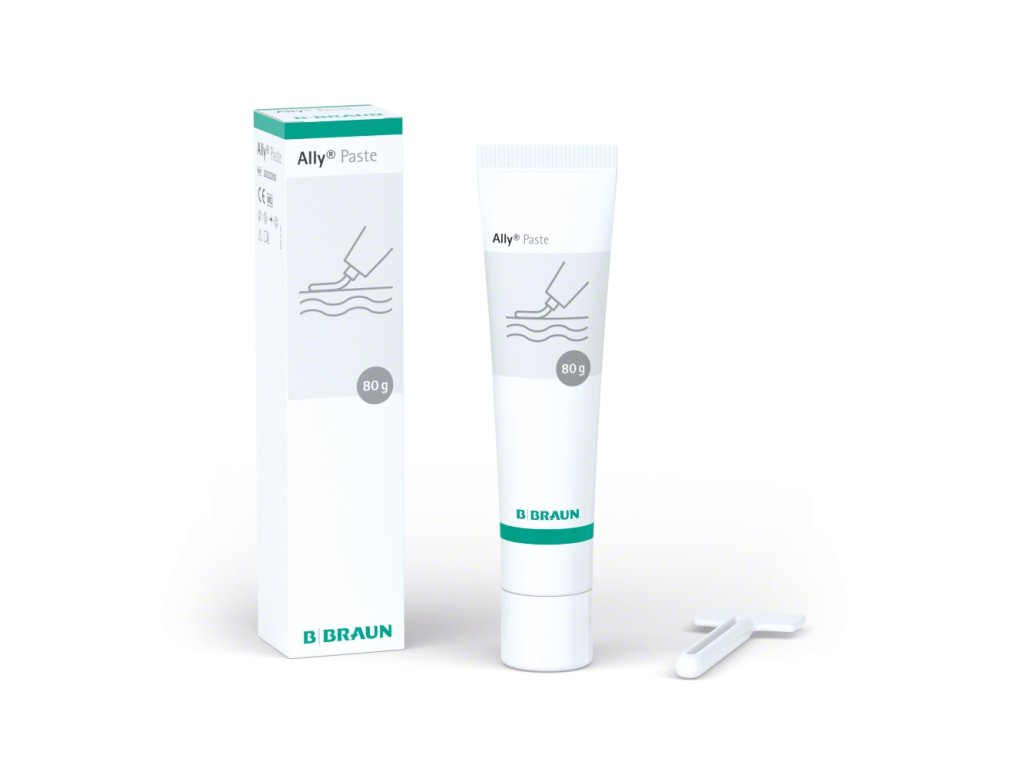 Ally Stomická pasta je určená na vyplnenie záhybov a zvrásnení pokožky v okolí stómie, čím zaisťuje dokonalé a tesné priľnutie medzi stómiou a pomôckou. Tým pomáha minimalizovať riziko podtekania a chráni citlivú pokožku pred podráždením alebo kontaktom s črevným obsahom. Pasta zároveň pomáha stabilizovať pomôcku a predlžuje jej dobu nosenia, čo zvyšuje pohodlie používateľa počas dňa.