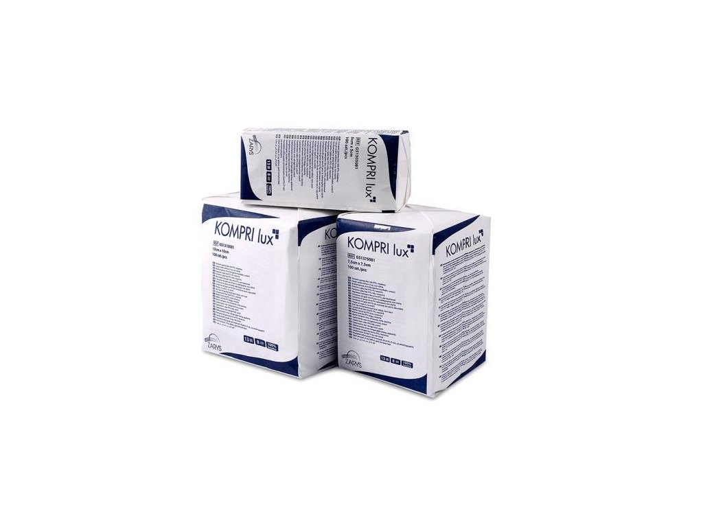 Kompres z gázy nesterilný KOMPRI lux 7,5x7,5 cm, 8-vrstvový, 17 nití je kvalitný gázový kompres určený na ošetrovanie rán a hygienickú starostlivosť o pokožku. Vyrobený je zo 100 % hydrofilnej bavlny, ktorá poskytuje vysokú savosť, mäkkosť a dobrú priedušnosť. Gáza je bielená bezchlórovou metódou s použitím peroxidu vodíka, čo znižuje riziko podráždenia pokožky.