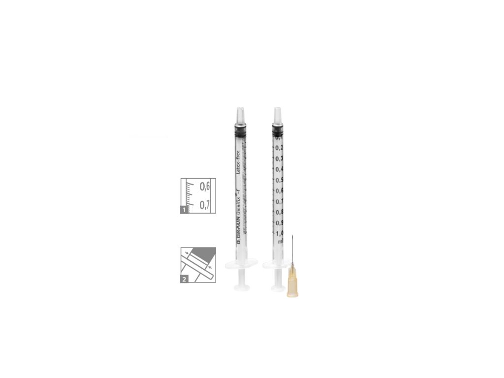 Trojdielna injekčná striekačka na malé objemy - 1 ml. Injekčná striekačka s kónusom bez závitu vyrobená podľa normy DIN 13098. Je vybavená bezpečnou piestovou zarážkou a minimálnym zvyškovým objemom, čím zabezpečuje presné a efektívne podávanie liečiv. Čitateľná čierna nezmývateľná stupnica s dielikom 0,01 ml umožňuje presné dávkovanie. Bezproblémové nasávanie až do maximálneho objemu. Produkt neobsahuje PVC, latex ani DEPH, čo zaručuje bezpečné použitie aj pre citlivých pacientov. Balenie obsahuje 100 kusov v kartóne.