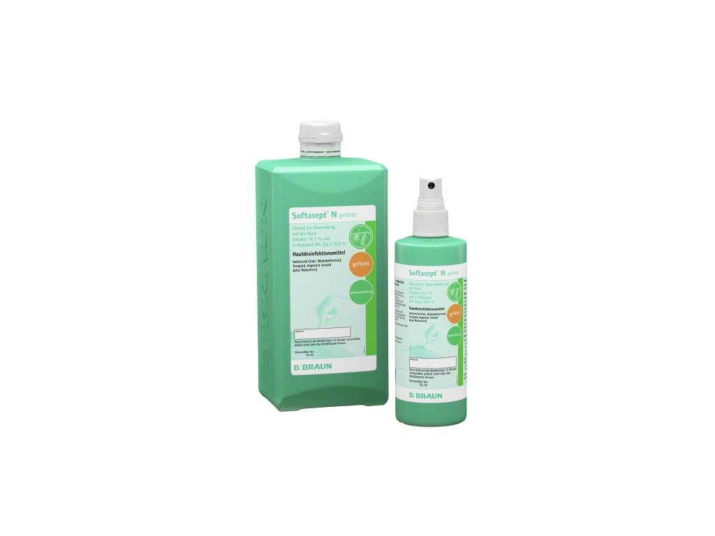 Alkoholový dezinfekčný prostriedok Softasept N Farbený je určený na rýchlu dezinfekciu kože pred injekciami, očkovaním, punkciami a chirurgickými zákrokmi. Poskytuje široké spektrum účinnosti, je pripravený na okamžité použitie a účinkuje už od 15 sekúnd pri dezinfekcii pred injekciami a vpichmi. Rýchlo schne a nezanecháva zvyšky. Účinné látky v 100 g roztoku: 74,1 g etanolu (100 %) a 10,0 g propán-2-olu.