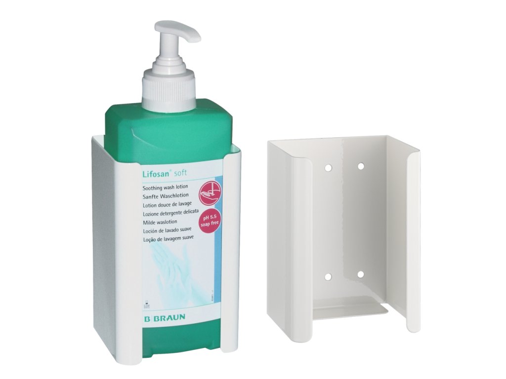 Je určený pre dávkovače s objemom 500 ml alebo 1000 ml a poskytuje stabilnú a hygienickú fixáciu, ideálnu pre zdravotnícke zariadenia, ambulancie, laboratóriá, ale aj komerčné priestory či domácnosti. Minimalistický dizajn z nehrdzavejúcej ocele sa hodí do akéhokoľvek prostredia a uľahčuje každodenné používanie dávkovača.