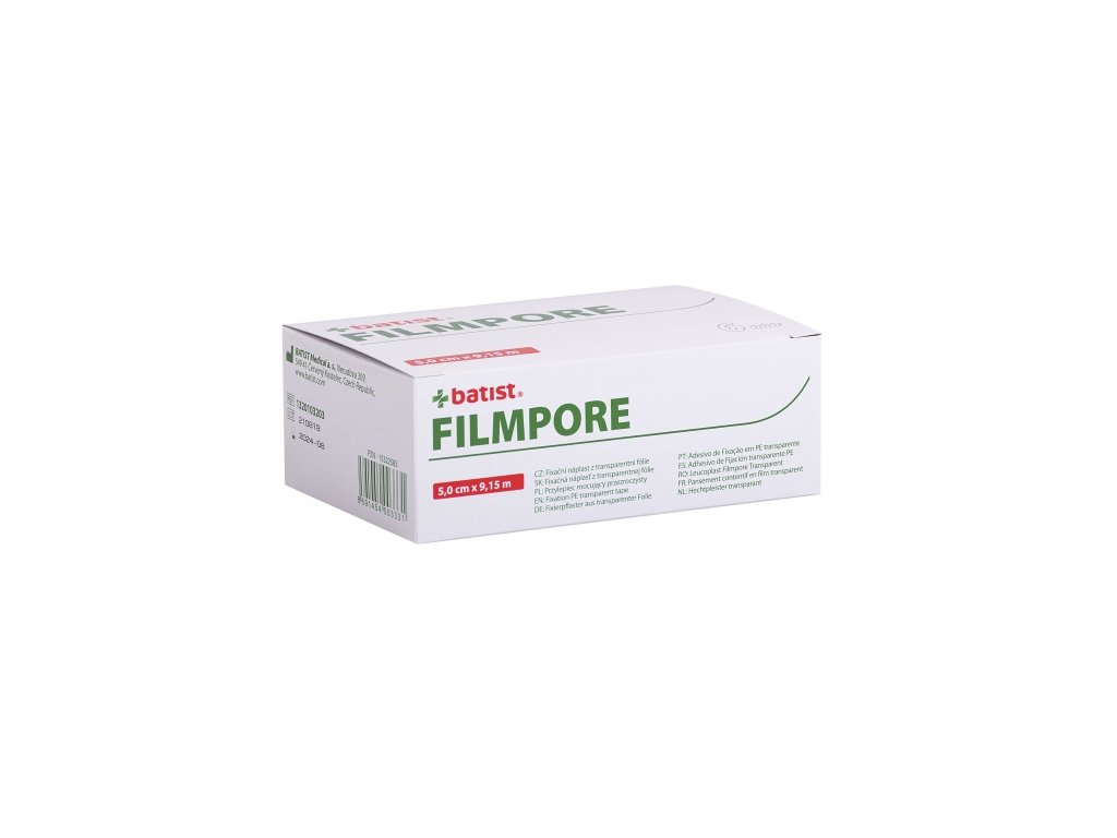 Nedráždivá fixačná náplasť z poréznej transparentnej fólie, ktorá prepúšťa vzduch a vodnú paru, čo zabezpečuje vynikajúcu znášanlivosť s pokožkou. Filmpore sa veľmi ľahko odtrhne, bezpečne fixuje a z pokožky sa odstraňuje bez zvyškov. Používa sa na transparentné upevnenie kanyl a na fixáciu obväzov. Vyššej priehľadnosti napomáha matný povrch upravený špeciálnou technológiou.