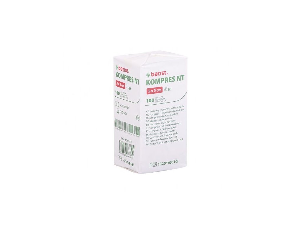 Kompresy z netkaného textilu sú vyrobené zo zmesi 70 % viskózy a 30 % polyesteru s plošnou hmotnosťou 30 g/m2. Tkanina je zložená do formy kompresov so štyrmi vrstvami. Balenie nesterilného výrobku je po 100 kusoch kompresov v papierovom sáčku. Sterilné výrobky sú dodávané v sterilnom balení a balené po 2, 5 alebo 10 ks.