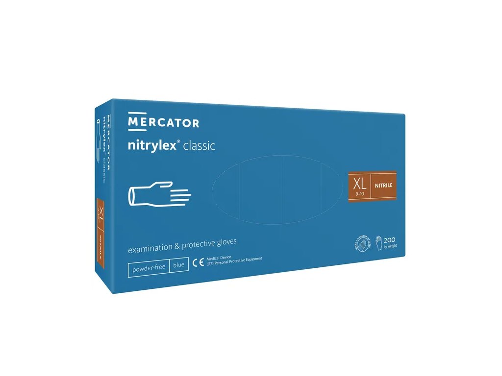 Jednorazové nesterilné nitrilové rukavice Mercator v modrej farbe sú bez púdru a určené na hygienické aj ochranné použitie. Vytvárajú spoľahlivú bariéru voči baktériám, plesniam a vírusom, majú textúrované konce prstov pre istý úchop a univerzálny tvar vhodný pre ľavú aj pravú ruku. Vnútorný povrch je potiahnutý polymérom pre jednoduchšie navliekanie a vyzliekanie.
