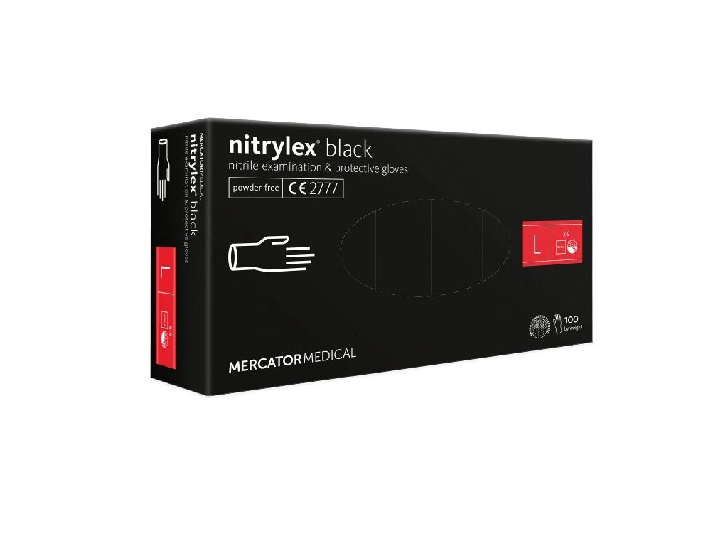 Jednorazové nesterilné nitrilové rukavice Mercator nitrylex v čiernej farbe sú nepudrované diagnostické/ochranné rukavice, ktoré spoľahlivo vytvárajú bariéru voči baktériám, plesniam a vírusom. Majú textúrované konce prstov pre istý úchop, rovnomerne rolovanú manžetu a univerzálny tvar vhodný pre ľavú aj pravú ruku. Vnútorný povrch je polymerovaný a chlórovaný pre ľahšie navliekanie a vyzliekanie.