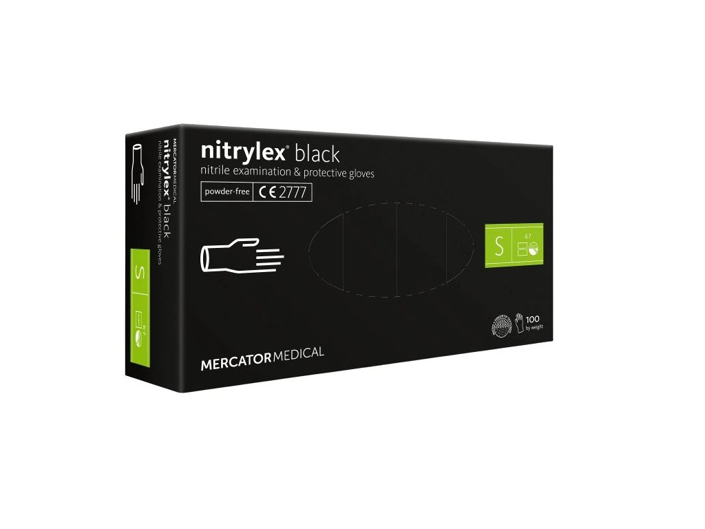 Jednorazové nesterilné nitrilové rukavice Mercator nitrylex v čiernej farbe sú nepudrované diagnostické/ochranné rukavice, ktoré spoľahlivo vytvárajú bariéru voči baktériám, plesniam a vírusom. Majú textúrované konce prstov pre istý úchop, rovnomerne rolovanú manžetu a univerzálny tvar vhodný pre ľavú aj pravú ruku. Vnútorný povrch je polymerovaný a chlórovaný pre ľahšie navliekanie a vyzliekanie.