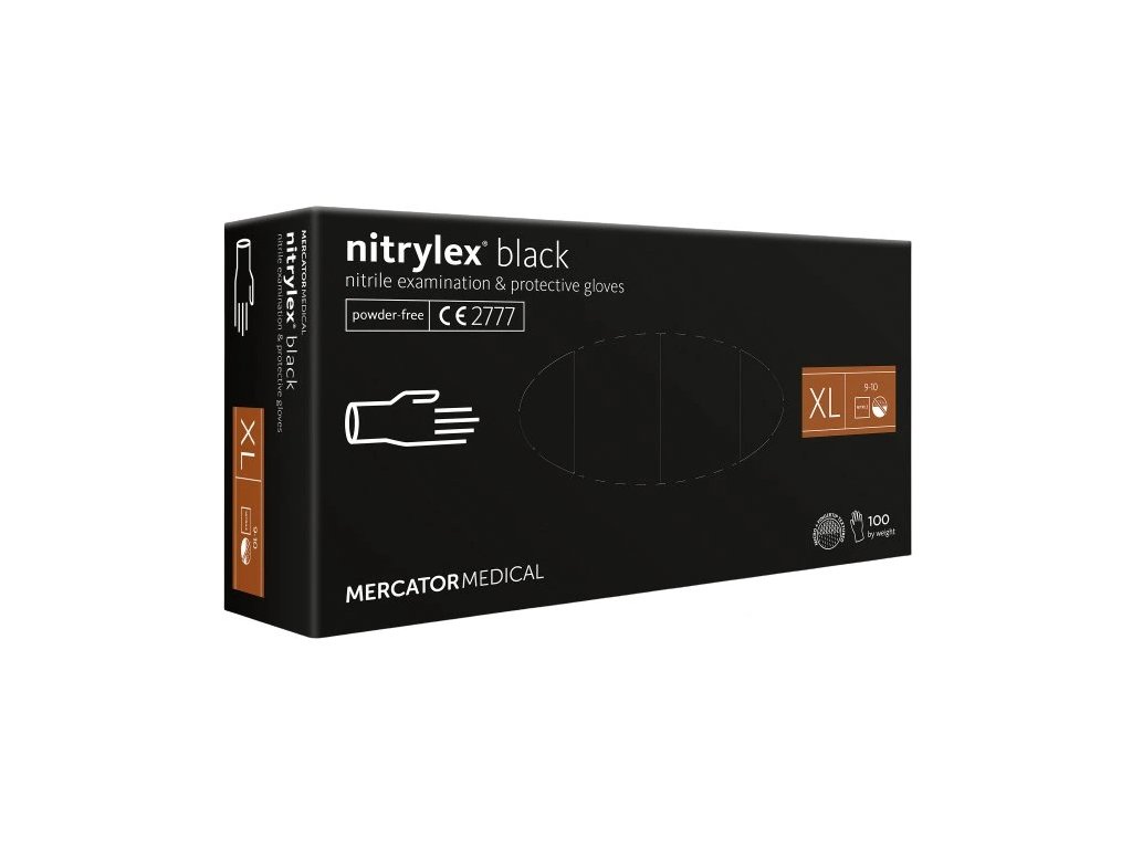 Jednorazové nesterilné nitrilové rukavice Mercator nitrylex v čiernej farbe sú nepudrované diagnostické/ochranné rukavice, ktoré spoľahlivo vytvárajú bariéru voči baktériám, plesniam a vírusom. Majú textúrované konce prstov pre istý úchop, rovnomerne rolovanú manžetu a univerzálny tvar vhodný pre ľavú aj pravú ruku. Vnútorný povrch je polymerovaný a chlórovaný pre ľahšie navliekanie a vyzliekanie.