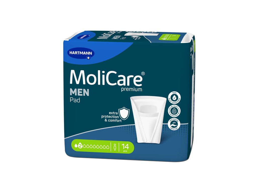 Anatomicky tvarovaná vložka pre mužov sa pomocou lepiaceho prúžku na vonkajšej strane uchytí v bielizni (alebo vo fixačných nohavičkách). Vložka sa vymieňa podľa potreby (niekoľkokrát denne). Absorpčné pomôcky na ľahký únik moču pre mužov v tvare vrecka. Dĺžka: 14cm ,savosť: 330ml.