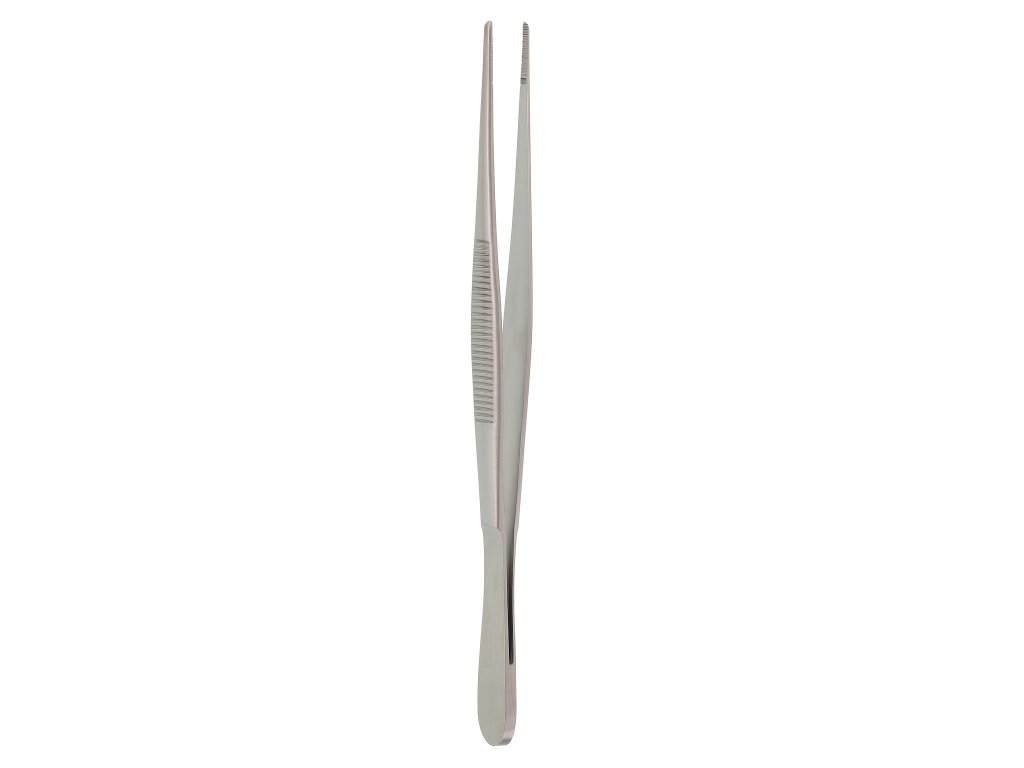 Rebstock pinzeta Standard 160 mm na precíznu manipuláciu s krytím a obväzovým materiálom. Priame ramená a jemne ryhované čeľuste (serrated) zabezpečujú istý úchop gázy či vaty bez poškodenia materiálu a znižujú riziko kontaminácie pri preväzoch a menších zákrokoch. Robustné vyhotovenie z chirurgickej nehrdzavejúcej ocele je trvácne, odolné voči korózii a vhodné na opakované použitie; saténovo matný povrch minimalizuje odlesky a zlepšuje prehľad v pracovnom poli.