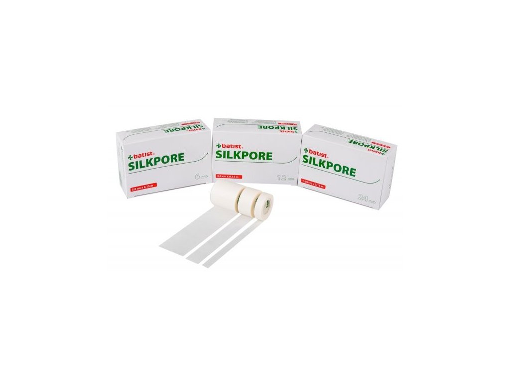 Pevná nedráždivá fixačná náplasť z umelého hodvábu v bielej farbe so silnou adhéziou. Silkpore je vhodná pre pacientov s citlivou pokožkou, prepúšťa vzduch a vodnú paru, takže pokožka dýcha. Výborne sa hodí na upevnenie sond, kanyl a katétrov, ako aj na fixáciu obväzov všetkého druhu. Pri odstránení nezanecháva neželané zvyšky lepidla.