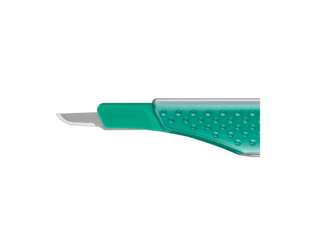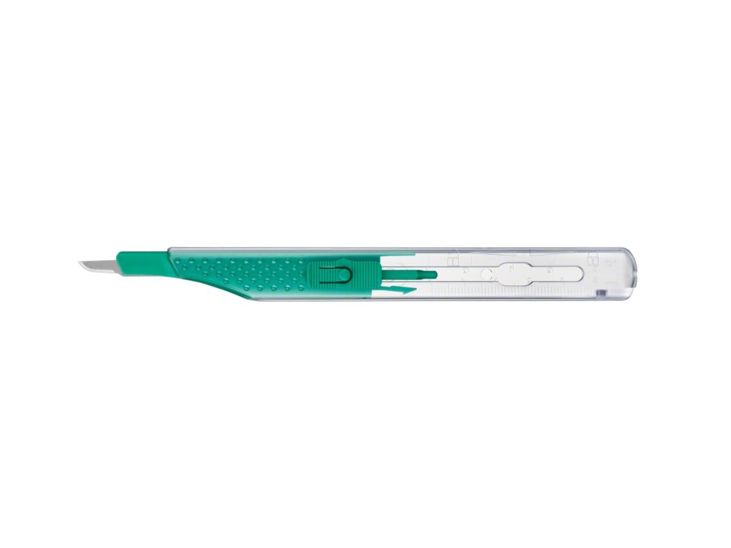 Aesculap Safety Scalpel je bezpečnostný skalpel navrhnutý tak, aby minimalizoval riziko infekcií a poranení počas chirurgických zákrokov aj pri manipulácii. Vďaka spoľahlivému mechanizmu uzamknutia čepele pri likvidácii zostáva čepeľ pevne fixovaná, čím sa predchádza náhodným rezom alebo pichnutiam.