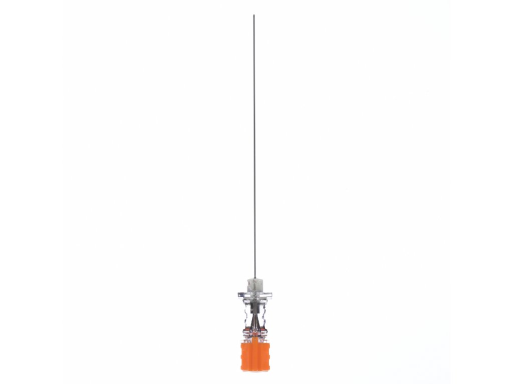Spinocan 25G (0,53 × 88 mm) od spoločnosti B. Braun je sterilná spinálna ihla určená na spinálnu anestéziu a diagnostickú lumbálnu punkciu. Hrot typu Quincke s ostrým rezacím výbrusom umožňuje presnú punkciu s nízkou silou prieniku a poskytuje jasnú hmatovú spätnú väzbu pri prepichnutí dura mater. Priemer 25G (0,53 mm) je označený oranžovým farebným kódom podľa medzinárodného štandardu. Ihla je vyrobená z nehrdzavejúcej ocele lekárskej kvality a vybavená transparentným kónusom z polykarbonátu, ktorý umožňuje okamžitú vizuálnu kontrolu spätného toku mozgovomiešneho moku. Presne lícujúci mandrén minimalizuje riziko vyrezávania tkaniva a prispieva k bezpečnému výkonu.