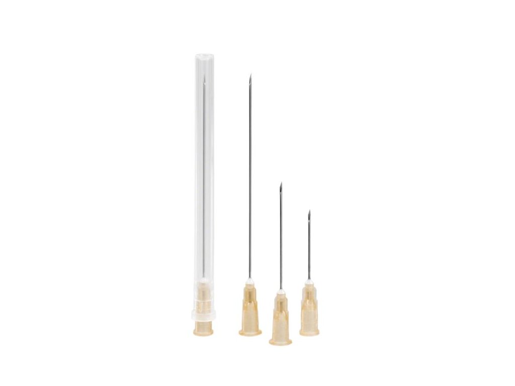 Tenkostenná ihla vyrobená z nehrdzavejúcej chrómniklovej ocele, s vysoko hladkým povrchom a špeciálne brúseným dlhým úkosom pre nebolestivý vpich. Transparentný kónus so závitom z polypropylénu a farebné značenie podľa DIN 13095 a ISO 6009. Podľa ISO 7864 a DIN 13097.