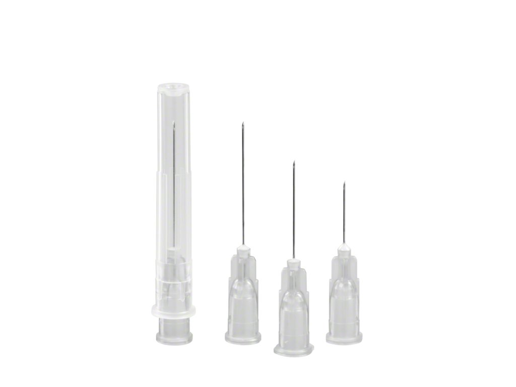 Tenkostenná ihla vyrobená z nehrdzavejúcej chrómniklovej ocele, s vysoko hladkým povrchom a špeciálne brúseným dlhým úkosom pre nebolestivý vpich. Transparentný kónus so závitom z polypropylénu a farebné značenie podľa DIN 13095 a ISO 6009. Podľa ISO 7864 a DIN 13097.