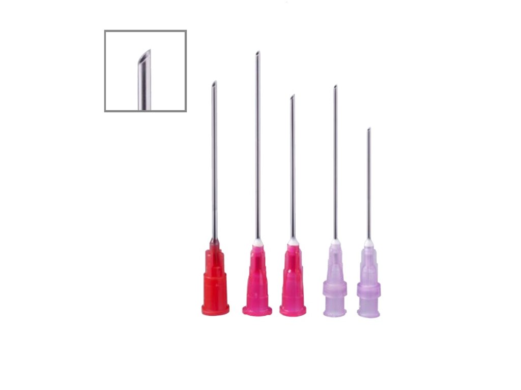 Tenkostenné ihly vyrobené z nehrdzavejúcej chrómniklovej ocele, s hladkým povrchom a ľahkým silikónovým povlakom pre minimálnu bolesť pri prepichnutí. Priehľadný plastový náboj Luer-Lock vyrobený z polypropylénu (náboj ihly) a farebne rozlíšený náboj zodpovedajú norme ISO 6009. Podľa ISO 7864 a DIN 13097.