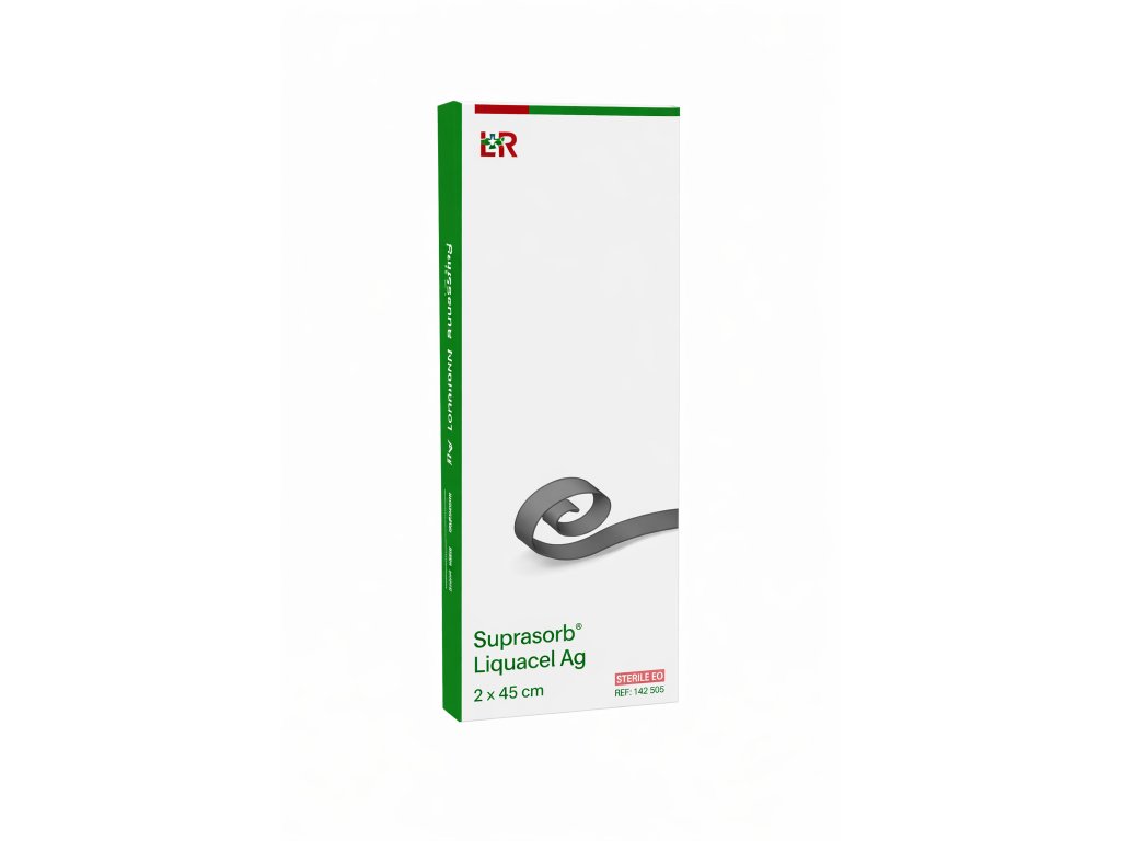 Suprasorb Liquacel Ag je antimikrobiálne hydroaktívne vláknité krytie typu hydrofiber s obsahom iónov striebra, určené na ošetrovanie silne exsudujúcich rán. Po kontakte s ranovým exsudátom sa vlákna menia na súdržný gél, ktorý účinne absorbuje tekutinu, baktérie a nečistoty a pomáha udržiavať optimálne vlhké prostredie rany.