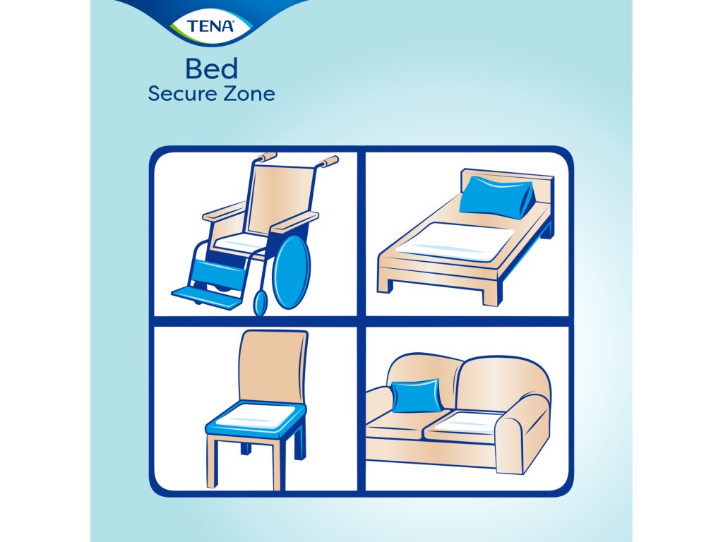 Absorpčná podložka TENA Bed Super slúži ako doplnková ochrana postele, kresla či vozíka a napr. pri výmene absorpčnej pomôcky. Absorpčné jadro vyrobené z buničiny a superabsorbentu pre efektívnu ochranu proti pretečeniu. Potlač na zadnej strane umožňuje jednoduchú identifkáciu úrovňe absorpcie. Je dostupná v rozličných veľkostiach a absorpčných úrovniach.