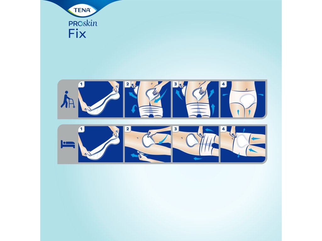 Fixačné nohavičky TENA Fix sú určené na fixáciu vkladacích plienok TENA Comfort a vložiek TENA Lady. Zaisťujú, aby plienky a vložky zostali bezpečne na svojom mieste. Vhodné pre mobilných aj imobilných pacientov, pre mužov i ženy. Sú bezšvové a teda minimalizujú tlakové body.