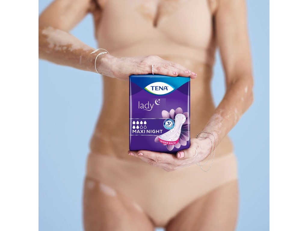Anatomicky tvarované vložky na noc TENA Lady sú špeciálne vyvinuté pre ženy s ľahkým únikom moču počas spánku. Poskytujú zvýšenú ochranu proti pretečeniu pri úniku moču počas spánku. Poskytujú zvýšenú ochranu proti pretečeniu pri úniku moču počas spánku. Rýchlo absorbujú moč a uzatvoria ho vo vnútri absorpčného jadra.