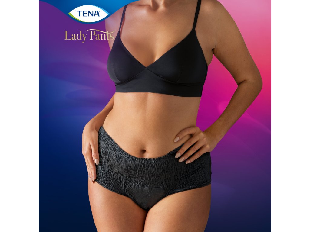 Prvé čierne absorpčné nohavičky TENA Lady Pants Noir pre ženy so strednou až ťažkou inkontinenciou. Vyzerajú ako spodná bielizeň, chránia ako TENA. Tvar savého jadra a dvojité ochranné bariérky poskytujú trojitú ochranu proti pretečeniu moču, vlhkosti a zápachu. Nohavičky sú čierne zvonka aj zvnútra a zaručia maximálnu diskrétnosť pri nosení.