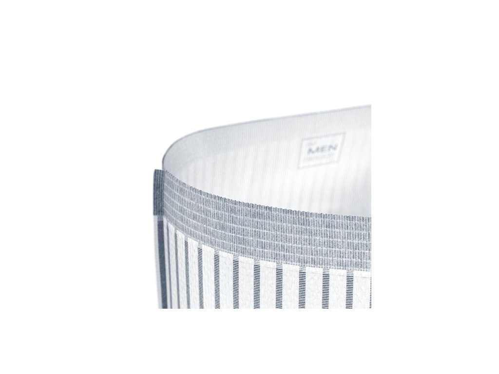 Spodná bielizeň sa dokonale sa prispôsobí tvaru mužského tela a zaručuje maximálnu diskrétnosť pri nosení. Je dermatologicky testovaná a nedráždi pokožku. Rýchlo absorbuje moč a uzatvorí ho vo vnútri absorpčného jadra. Absorpcia: 1430 ml, obvod bokov: 75-100 cm.