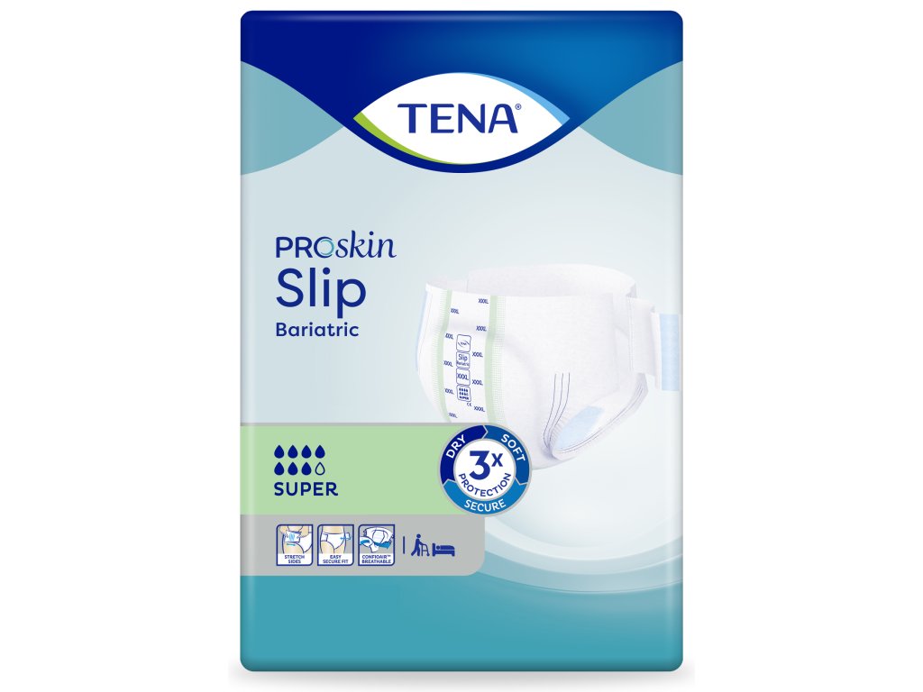 Plienkové nohavičky TENA Slip Bariatric sú praktickým riešením pre imobilné osoby s ťažkou inkontinenciou moču. Vhodné pre osoby s obvodom bokov až 178 cm, pre mužov aj ženy. Pružné pásky na bokoch zaisťujú pohodlné nosenie. Široký suchý zips poskytuje dokonalú fixáciu, a tým ochranu pred pretečením.