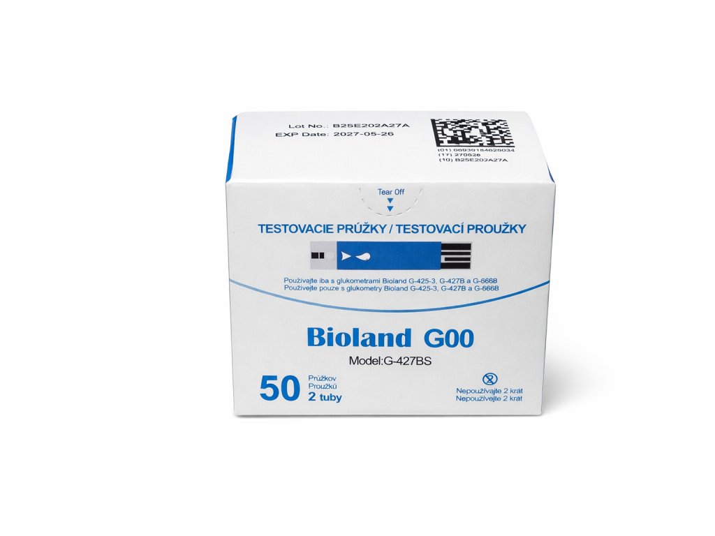 Testovacie prúžky na glukózu Bioland sú určené na meranie hladiny glukózy v kapilárnej krvi. Odber krvi je možné vykonať z končekov prstov, dlane alebo predlaktia. Prúžky sú kompatibilné výhradne s glukometrami Bioland G-425-3, G-427B a G-666B.