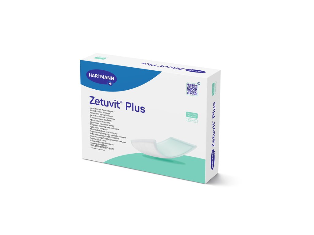 Zetuvit Plus je sterilné superabsorpčné krytie určené na ošetrovanie povrchových rán so strednou až silnou sekréciou. Vďaka veľmi vysokej absorpčnej schopnosti účinne viaže exsudát a pomáha udržiavať ranu v stabilnom prostredí podporujúcom hojenie.